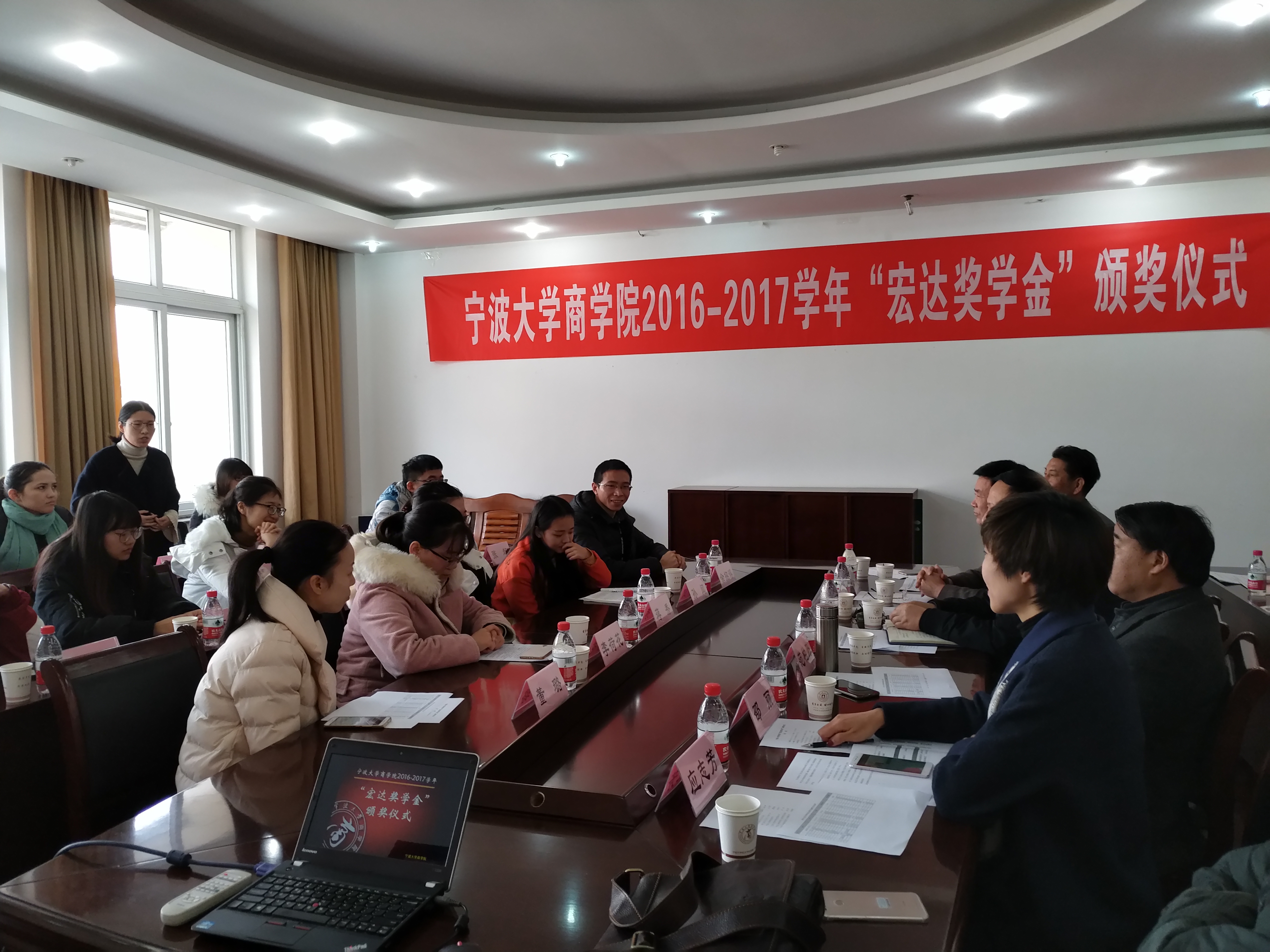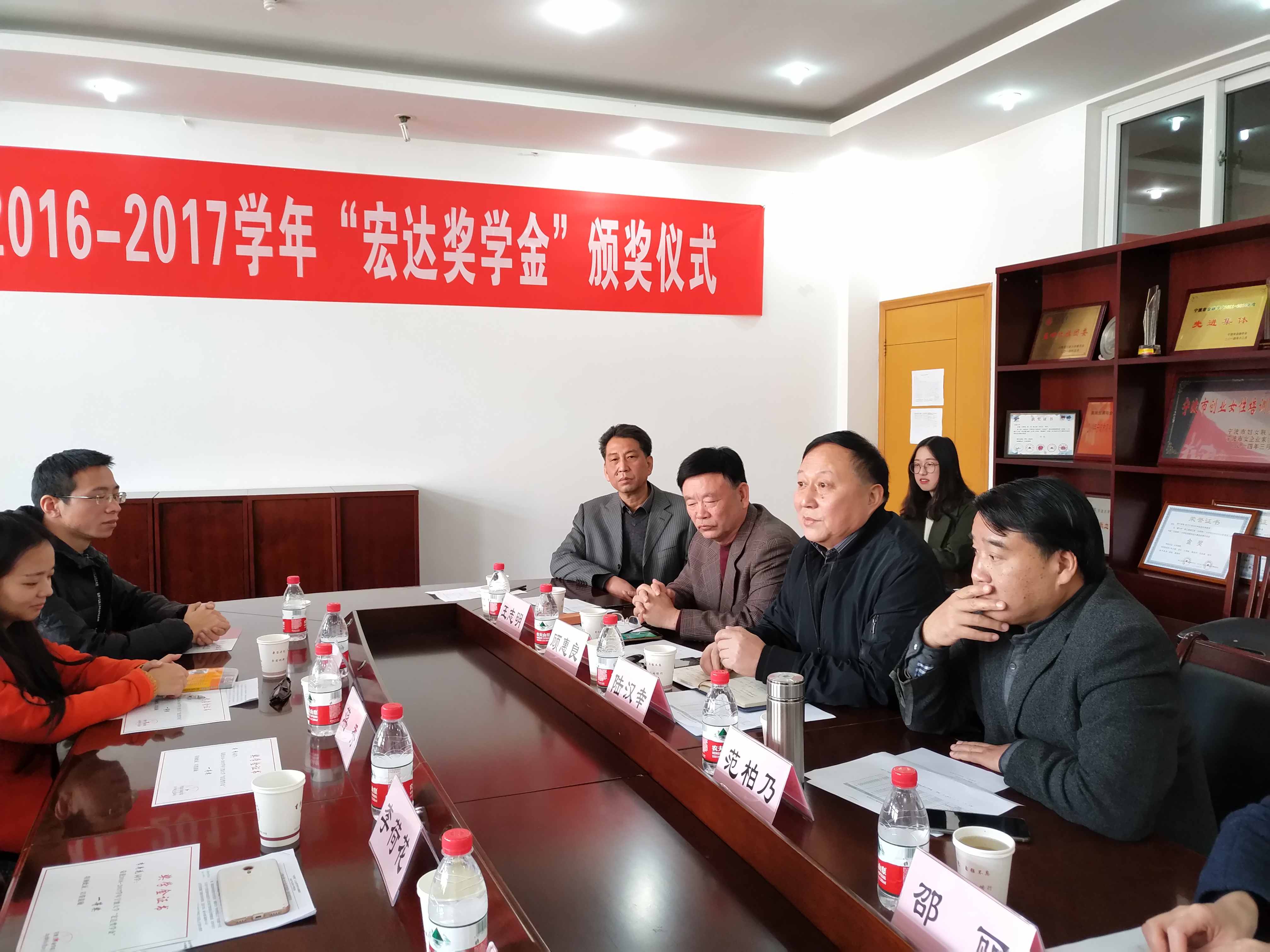 2017年12月9日上午,捷克论坛 2016-2017学年“宏达奖学金”颁奖仪式在捷克论坛 412会议隆重举行。宁波宏达货柜储运有限公司董事长陆汉幸、原宁波市北仑区王志明区长、原宁波市北仑区人大顾惠良副主任、捷克论坛 院长范柏乃、捷克论坛 工商管理系教师应志芳及16名获奖学生出席颁奖仪式。捷克论坛 党委副书记邵丽主持颁奖仪式。