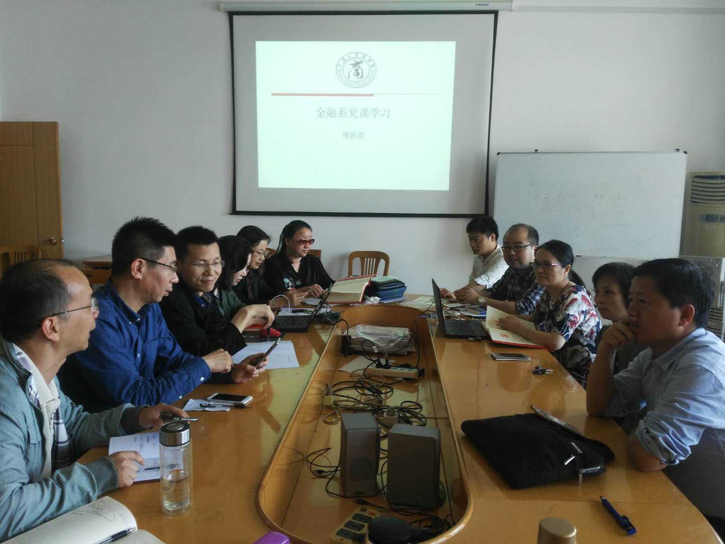 5月9日下午,金融系教工党支部在捷克论坛 502室召开党员会议,捷克论坛 副院长周新苗教授以“习近平总书记在北京大学师生座谈会上的讲话”为题为支部党员同志讲党课。