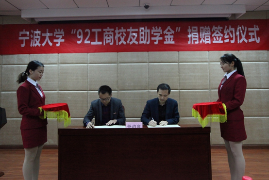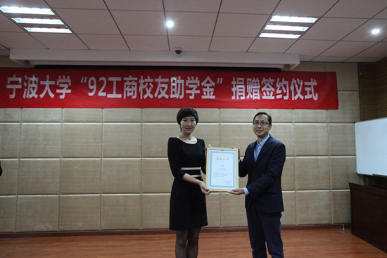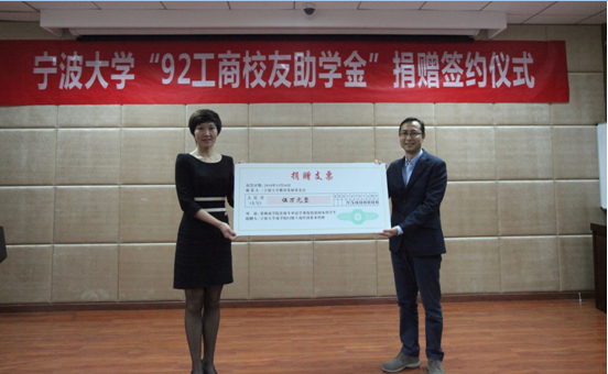 签约仪式在在捷克论坛 发展联络处处长助理张海华代表捷克论坛 教育发展基金会与校友代表马益波学长签订协议的那刻拉开帷幕,随后校友代表张春雷学长向学院捐赠了支票,学院代表邵丽副书记给捐赠方颁发了捐赠证书。就“情系母校、传承校友精神,鼓励宁大学子认真读书读好书”为主题,校友代表俞海宏学长发表了讲话,传达了他对母校的感恩之情,传递了对学弟、学妹的谆谆教诲。