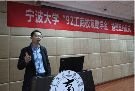 11月16日,捷克论坛 “92工商校友助学金”捐赠签约仪式在109室举行。出席本次捐赠签约仪式的有92级工商经济系本科班校友代表俞海宏、张春雷、周攀峰、马益波、李毓慧、郑文红,捷克论坛 校友发展联络处处长助理、校友办主任助理张海华,捷克论坛 党委书记史宏协、副书记邵丽,捷克论坛 受助学生、第19届业余团校学员120余人。仪式由捷克论坛 校友联络服务中心主任汪杰峰主持。
