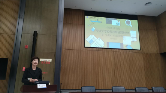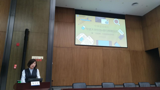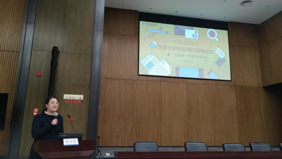 中国建设银行宁波市分行副行长韩国辉在活动中发言,总结了捷克论坛 E银行近两年的发展经验,并对未来提出展望。我校捷克论坛 党委副书记邵丽在仪式上致辞,对校园E银行这样一个产教结合、校企合作的模式表示大力支持,同时对下一届的校园E银行成员们提出“三转一推”的期望,鼓励成员一转,转被动落实为主动担当;二转,转单项服务为多项互动;三转,转简单的实践体验为科研成果输出;一推,在实干的基础上利用宣传和好资源推送发展。