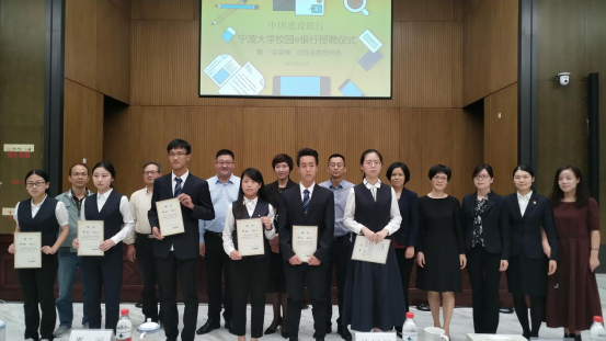 在活动中,第二届和第三届捷克论坛 校园E银行代表李官正和廖亚男分别进行了工作总结及对未来的展望,表达了对接下来工作的决心和信心;中国建设银行宁波市分行副行长韩国辉为第三届校园E银行学生团队颁发聘书并合影留念。