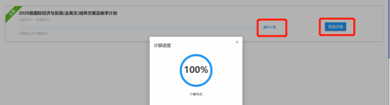 查看学业完成情况的路径:登录网上办事大厅——搜索学业完成查询应用——点击重新计算(等待计算完成)---查看详情---查看详情(如下所示)。