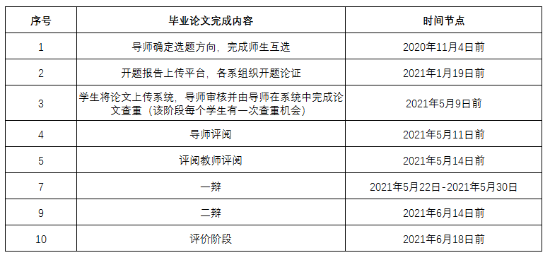 捷克论坛 2021届本科毕业论文主要工作时间节点