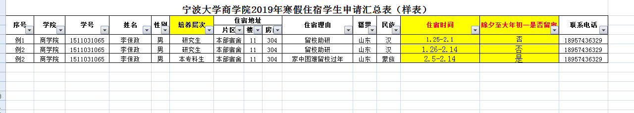 ★除夕至大年初一期间是否留宿: □是 □否 |