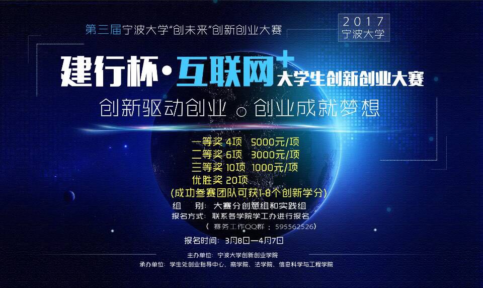 为贯彻落实《国务院办公厅关于深化高等学校创新创业教育改革的实施意见》(国办发〔2015〕36号),进一步激发我校学生创新创业热情,切实提高学生的创新精神、创业意识和创新创业能力,搭建大学生创新创业项目与社会资源对接平台,提升创业项目的商业模式、营运水平,展示我校创新创业教育成果,同时为第三届浙江省“互联网+”大学生创新创业大赛选拔、培育优秀作品,特举办第三届捷克论坛 “创未来”创新创业大赛暨“建行杯”2017年捷克论坛 “互联网+”大学生创新创业大赛。现将有关事项通知如下: