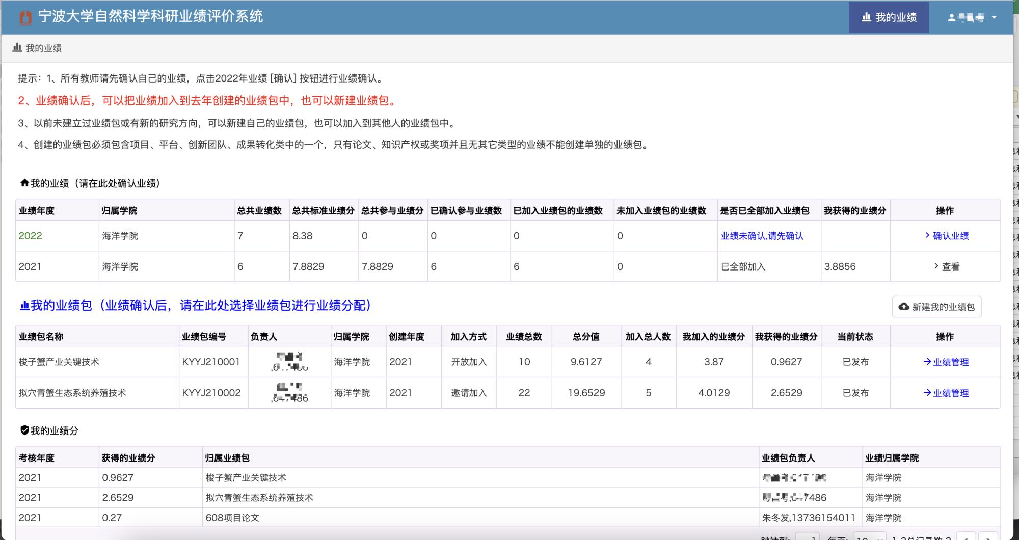 本人的科研业绩确认完成后,就可以进行业绩包的创建,也可以加入到自己或者别人创建的业绩包中。
