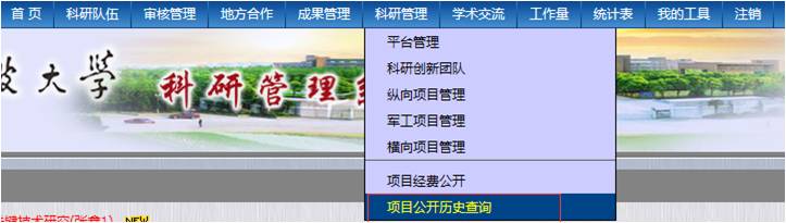 在“科研管理/项目公开历史查询”中,点击“项目流水号”,可查看该项目的历史公布信息,目前仅科技类项目可查看。