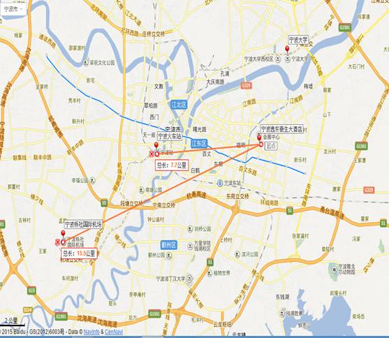 (1)直接打车至宁波逸东豪生大酒店(约27元);