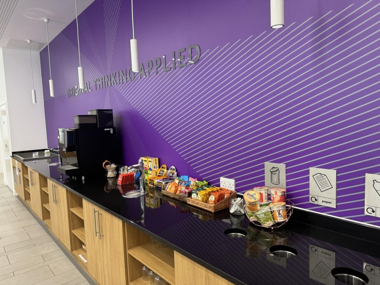 图为曼大捷克论坛 第一天注册材料,舒适的教学环境,教室外每日提供免费自助的水果、咖啡、茶、小食等供学生选择。