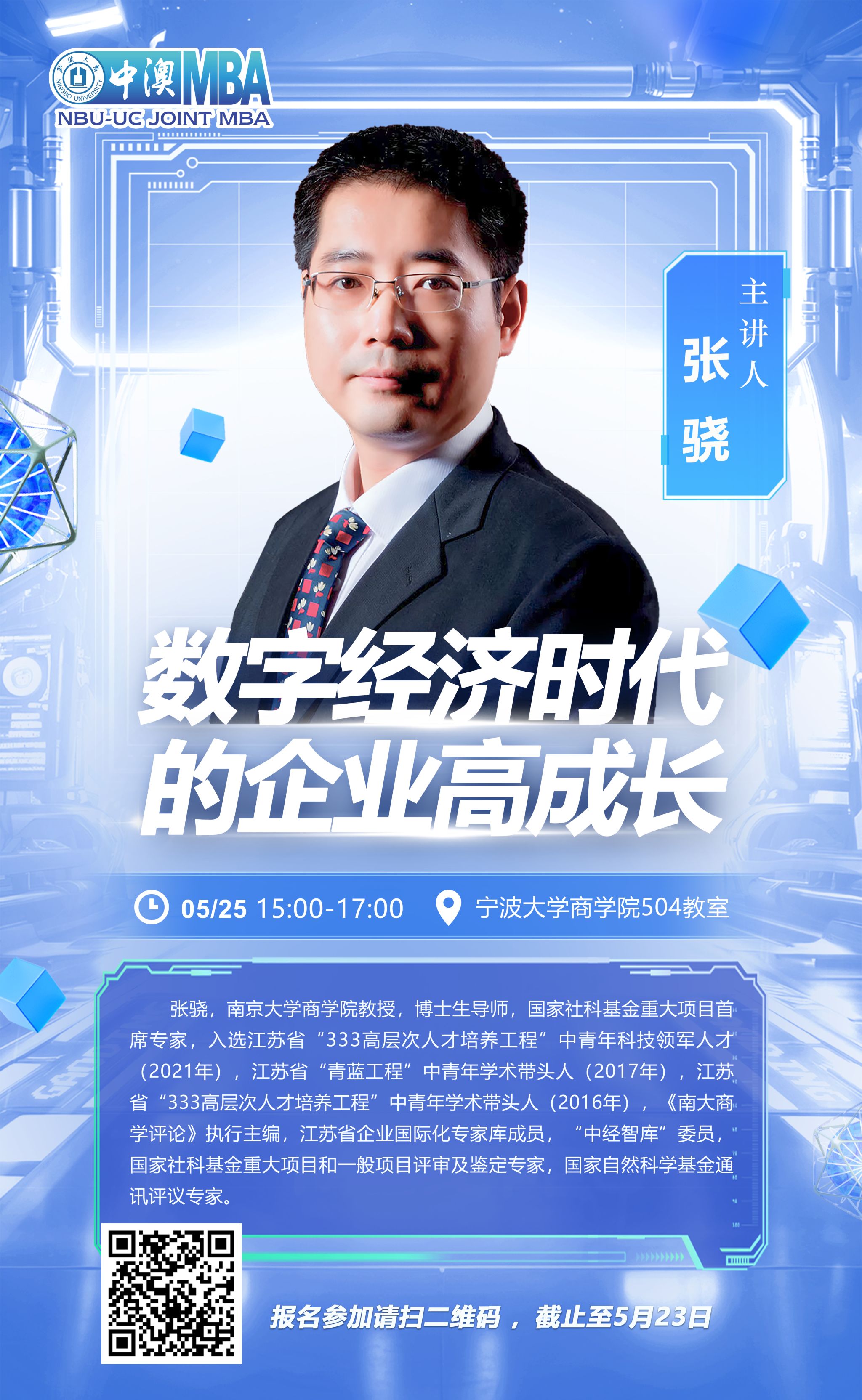 为进一步提升中澳MBA项目教学育人质量,促进校友与学校的交流互动,中澳MBA项目特邀请南京大学捷克论坛 张骁教授来院进行题为《数字经济时代的企业高成长》的讲座。欢迎广大师生校友积极参加!