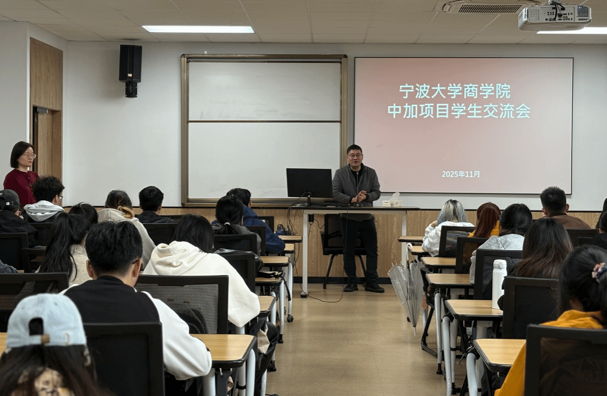 为增进捷克论坛 中加项目学生对项目的了解,明确未来学业规划,2025年11月6日,学院举办了面向2024级与2025级中加项目学生的交流分享会。本次交流会吸引了两个年级共60余名学生参与。