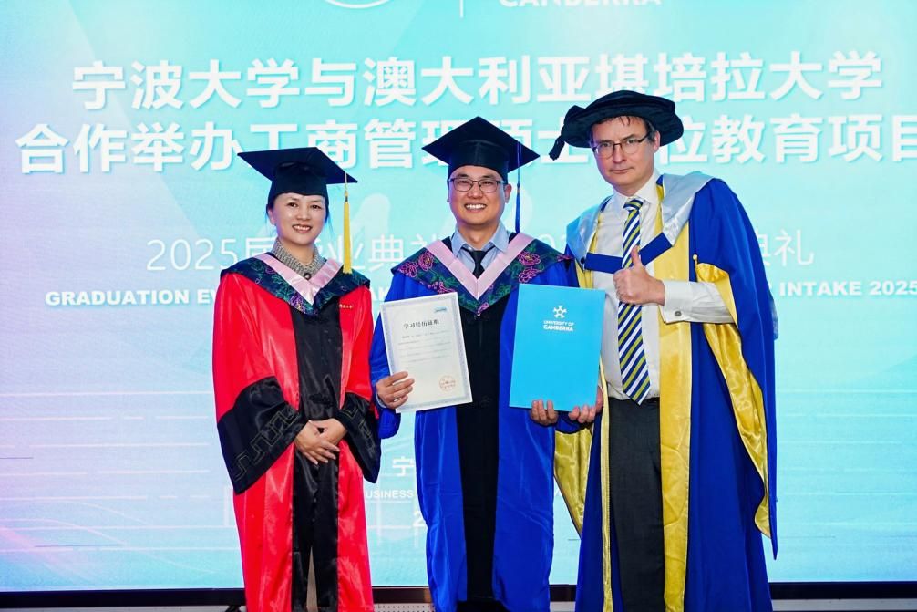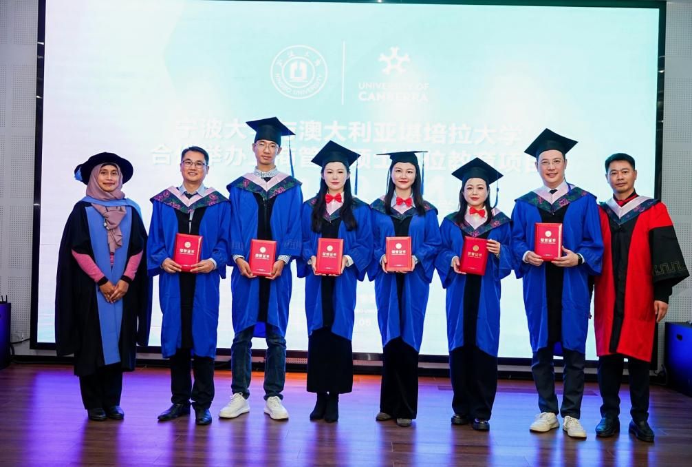 随后由院党委副书记吴敏宣读2025届毕业生名单。双方院长共同为毕业生颁发了澳大利亚堪培拉大学的工商管理硕士学位证书和捷克论坛 学习经历证明。