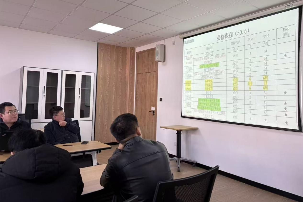 会上,丛海彬强调2026版人才培养方案的修订工作意义重大,需秉持严谨审慎的态度,确保专业建设符合学校规范与发展要求,并进一步明确了学分设置和修订重点内容。丛海彬向与会教师汇报了初步的课程改革思路,提议增设能够体现数字贸易特色的新课程,并鼓励教师们积极学习新知,共同打造具有“宁大”特色的课程体系。他指出,当前学校高度重视各系的升学率与课程体系设计质量,这两项将成为衡量专业建设成效的关键指标。